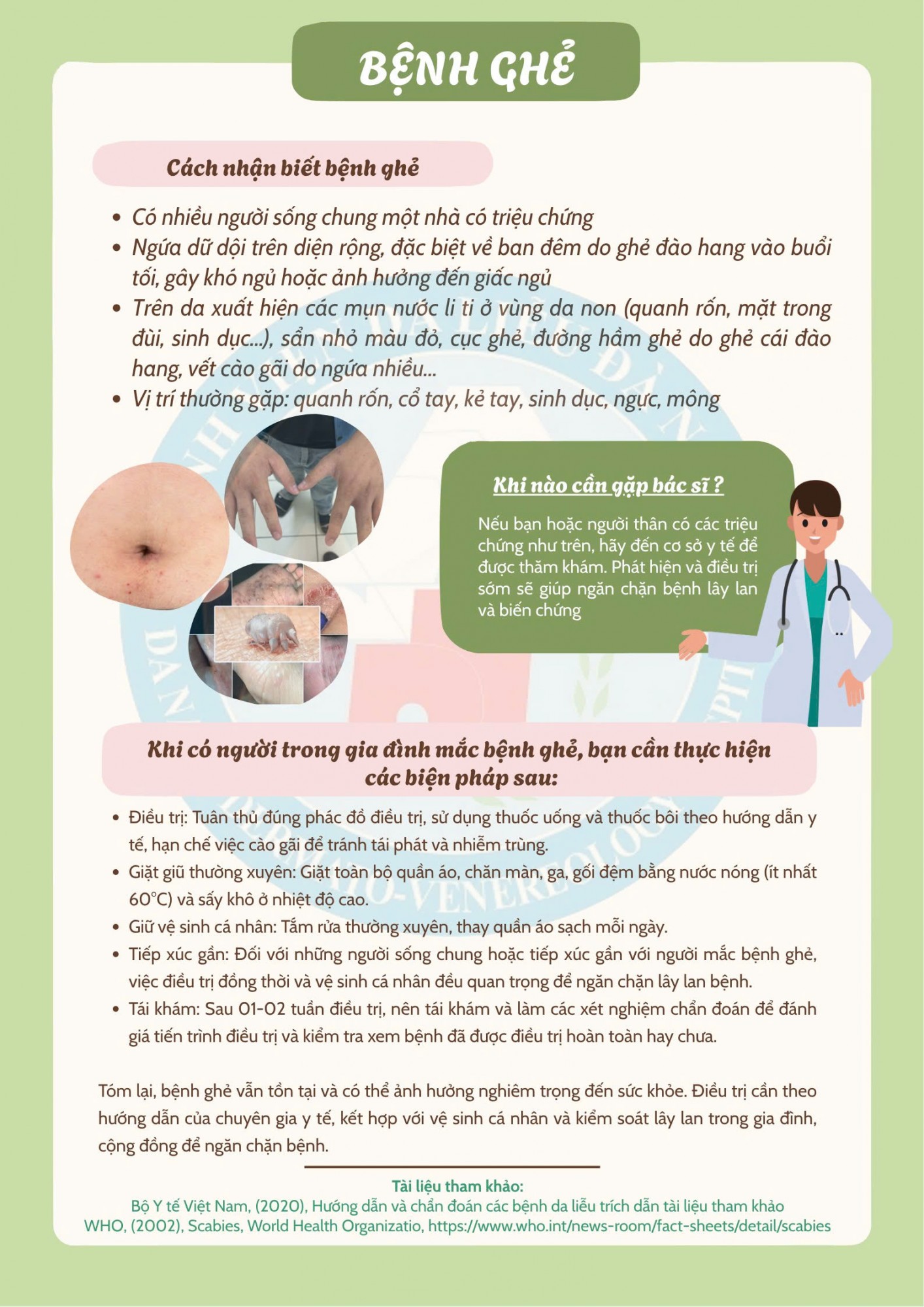 Nguồn tin: Tài liệu tham khảo: Bộ Y tế Việt Nam, (2020), Hướng dẫn và chẩn đoán các bệnh da liễu trích dẫn tài liệu tham khảo WHO, (2002), Scabies, World Health Organizatio, https://www.who.int/news-room/fact-sheets/detail/scabies